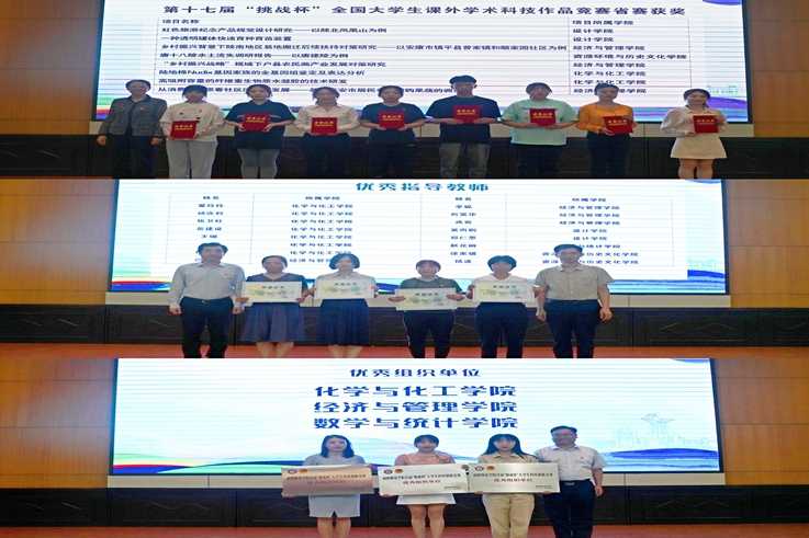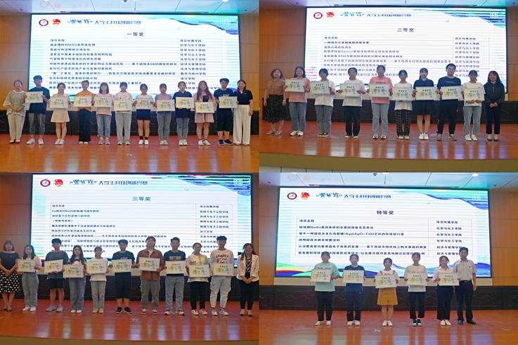 此次“鼎成杯”大学生科技创新竞赛共有特等奖5项,一等奖10项,二等奖15项、三等奖17项,省赛获奖作品8项,及优秀作品奖、优秀指导教师奖、优秀组织奖。与会领导为获奖集体和个人进行了颁奖。