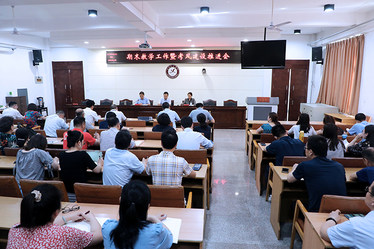 6月21日,beat365在第四会议室召开学期末教学工作暨考风建设推进会,专题安排布署全校期末考试有关工作。校长舒世昌、党委副书记周群英出席。副校长王长顺主持会议。
