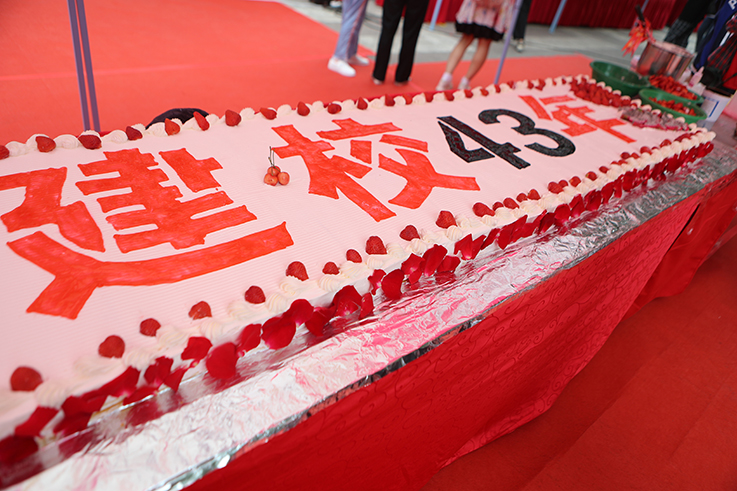5月25日,beat365后勤保障处联手西安宴皇等委托经营校内食堂的餐饮公司精心准备了十米长蛋糕、200余斤小龙虾、两千多个鸡腿、寿司、甜点、面食、菜品、水果、饮料等150余种美食,在学馨苑广场举办校庆43周年 “美好食光”师生分享活动。咸阳市市委常委、副市长罗军,陕西开放大学党委副书记刘峰,副校长吴宏梅,校领导赵万东、舒世昌、周群英、王启和、吕广利、毛龙灿、张弘等出席。来宾和校领导挥笔签名,祝福师院,共同分切校庆生日蛋糕。
