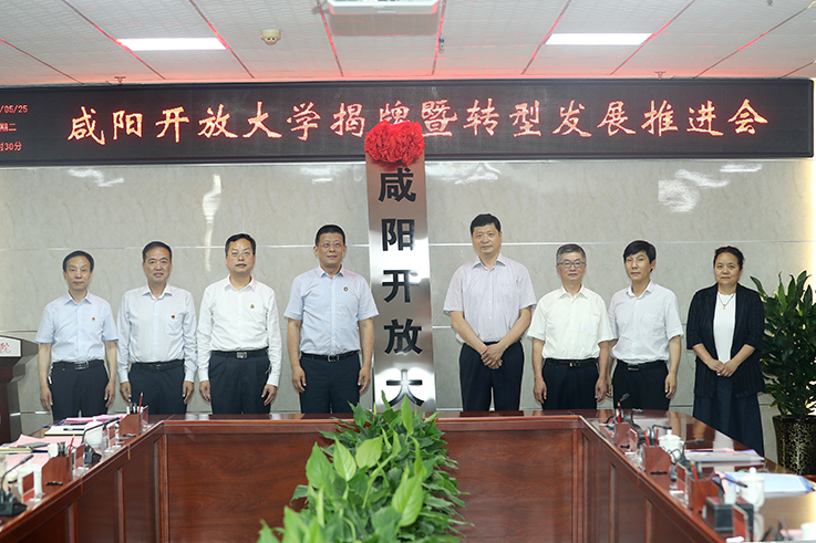 5月25日,咸阳开放大学揭牌暨转型发展推进会在beat365正版唯一官网必一举行。中共咸阳市市委常委、副市长罗军,咸阳市教育局党组书记、局长丁收卫,校党委书记赵万东,校长舒世昌,陕西开放大学党委副书记刘锋,副校长吴宏梅等出席。副校长吕广利主持会议。