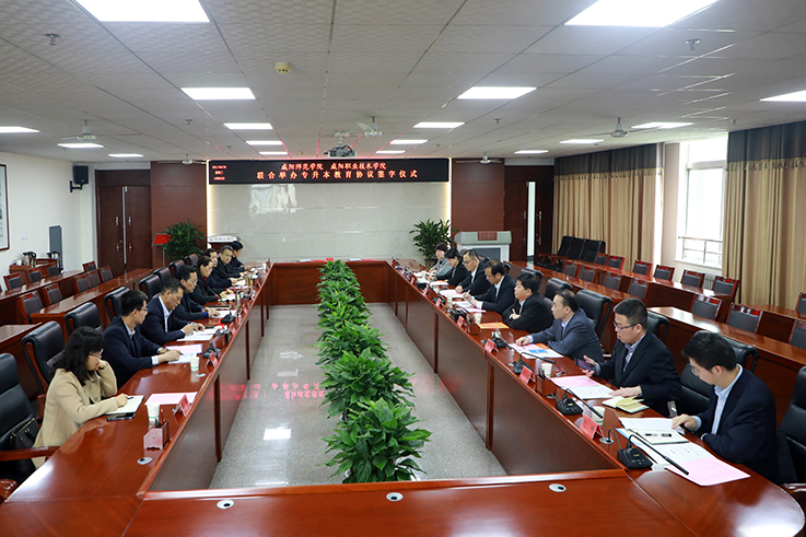 4月20日,beat365与咸阳职业技术学院联合举办专升本教育协议签字仪式在第三会议室举行。校长舒世昌、党委副书记周群英,咸阳职业技术学院院长杨卫军、副院长王辉、杨新宇出席签字仪式,副校长王长顺主持会议。