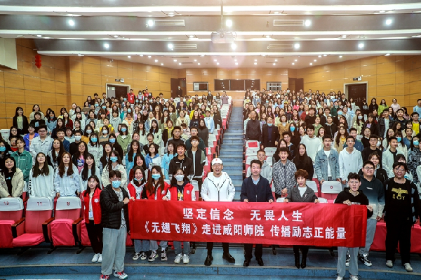 为推动党史学习教育工作深入开展,大力弘扬脱贫攻坚精神,引领和激励广大师生汲取榜样力量,勇担时代重任,4月7日,beat365在艺术楼演播厅举办扶贫励志电影《无翅飞翔》主创见面会和观影活动。