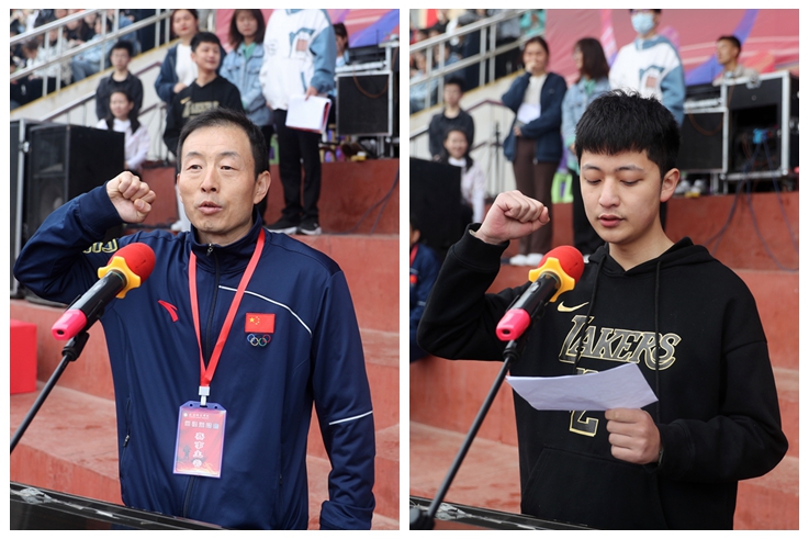 体育学院教师王永鹏、外国语学院学生叶羽桥分别代表裁判员和运动员进行了宣誓。
