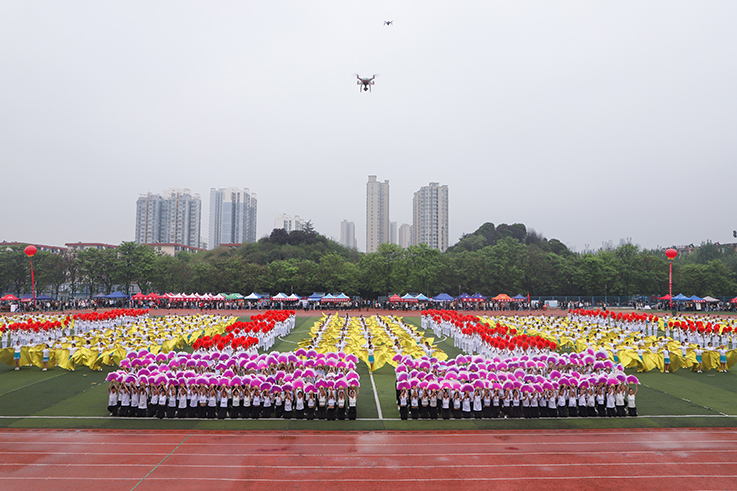 伴着热烈的掌声与欢呼声,在场师生共同观看了由教工团队、化学与化工学院、音乐学院、外国语学院和体育学院学生表演的气势宏大、精彩纷呈的五个篇章的大型团体操表演。