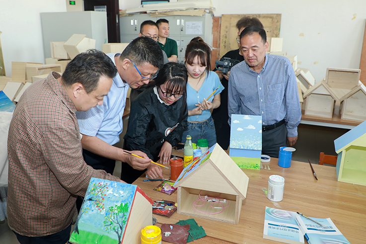 为建设生态文明校园,助力咸阳市创建国家森林城市吸引更多的鸟类栖息在树木葱茏的校园中,校党委书记赵万东、副校长吕广利应邀参加美术学院举办 的“创建美好生态,师生共绘鸟巣”活动,与美术学院师生一起举起画笔,为美丽校园建设共绘生态鸟巣。此次活动共绘制生态鸟笼200余个,将悬挂在beat365校园内,成为校园一个新的打卡地。