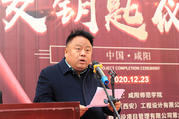 武剑代表渭城区政府致辞,他指出多层住宅的电梯加装工作,是响应国务院、省、市老旧小区改造、提升更新城市工作的重要内容和重点项目,也是改善居民生活环境和品质的民生工程。在学校党委和渭城区委区政府高度重视和大力支持下,双方相关部门和施工单位通力配合,整体联动,不断优化完善工程细节,保证工程质量,确保了加装工程的顺利验收交付,真正做到便民、惠民。他希望双方继续秉承“校地合作、共建共赢”的发展理念, 凝聚工作合力,相互支持、加强合作、砥砺前行,共同谱写校地高质量发展的华美篇章。