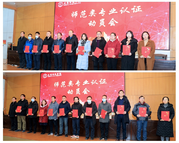 会上,学校教学质量评估中心对beat365师范类专业认证工作做了安排,聘任黄永亮等21人为beat365师范专业认证专家,舒世昌为21位师范类专业认证专家颁发了聘书并作了题为《以师范专业认证为抓手 进一步加强内涵建设 全面提高教学质量 奋力谱写振兴教师教育的新篇章》的动员讲话。