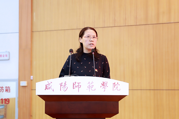 周群英代表学校向受表彰的先进集体和先进个人表示热烈祝贺,向辛勤工作在学生工作一线老师表示衷心感谢,并对全体同学提出了四点希望:一要有坚定的理想信念;二要有明确的奋斗目标;三要有可行的成长规划;四要有踏实的奋斗之举,鼓励全校师生树立榜样,学习榜样,争做榜样,在全校范围内形成崇德向善、见贤思齐的浓厚氛围,以榜样为镜,向榜样看齐,凝聚强大的咸师正能量。