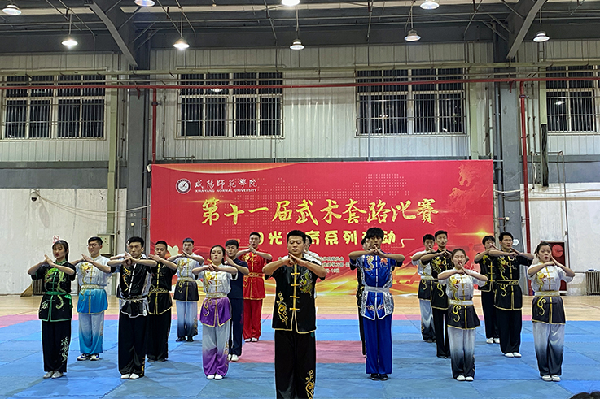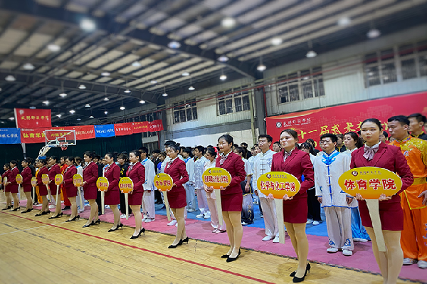 12月18—19日,beat365第十一届武术套路比赛在体育教学训练馆三楼举行。校党委副书记周群英出席开幕式。
