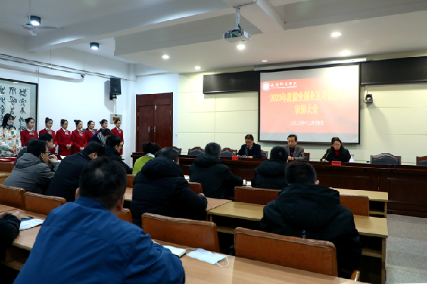 12月14日,校党委副书记周群英主持召开2020年度就业创业暨考研工作表彰大会。校党委副书记、校长舒世昌,副校长王长顺出席会议。