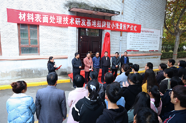 10月29日,beat365首个校企共建研发基地---材料表面处理技术研发基地挂牌暨小批量投产仪式在秦都校区研发基地举行。副校长张弘、中法高速铁路技术有限公司采购部部长薛兆春共同为材料表面处理技术研发基地挂牌。
