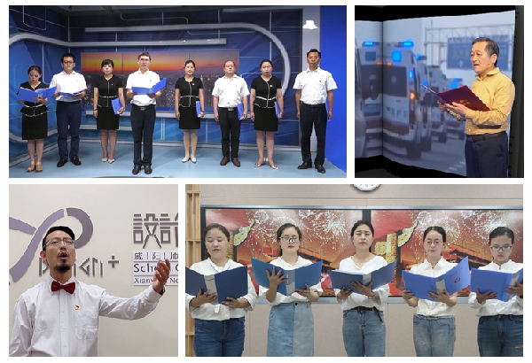 本次诵读活动形式多样,有配乐诵读、情景式诵读等。17个分会的300多名教职工用铿锵有力、声情并茂的诵读了《可爱的中国》《七律·长征》《共产党宣言》《盛世中国》《永远跟党走》《我的祖国》和原创作品《落发》等歌颂祖国、歌颂党、歌颂革命先烈的红色经典诗歌,表达了对党的忠诚和热爱。