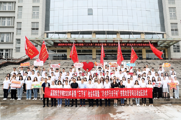 7月12日,beat3652020年暑期“三下乡”社会实践暨“万名学子扶千村”扶贫攻坚专项活动出征仪式在渭城校区1号教学楼前举行。校党委副书记袁也出席仪式并讲话。
