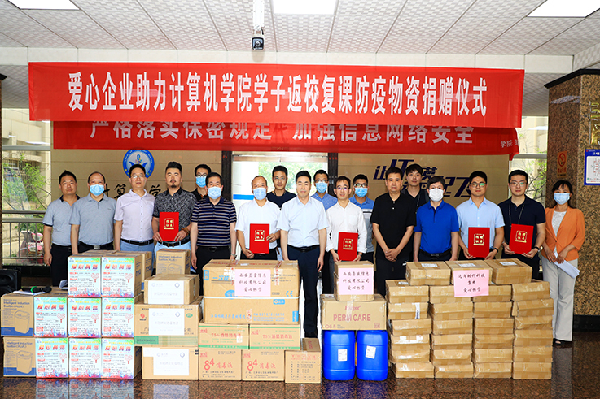 党政办公室主任张波、国有资产管理处处长葛霄、教务处副处长龚彦忠、计算机学院党委书记沈会玲参加捐赠仪式并为爱心企业颁发捐赠证书。