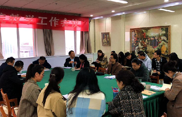 美术学院党政领导、科级干部、教研室主任、全体辅导员、教师和学生代表参加会议。