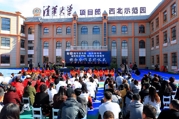 签约仪式上,教务处副处长潘凌杰、职业技术学院院长赵增新分别与彬州丰智教育集团总经理池大强签订了协同创新实践育人协议、幼儿园师资培训模式横向课题研究项目协议。袁也和池大强一起为教学实践基地揭牌。
