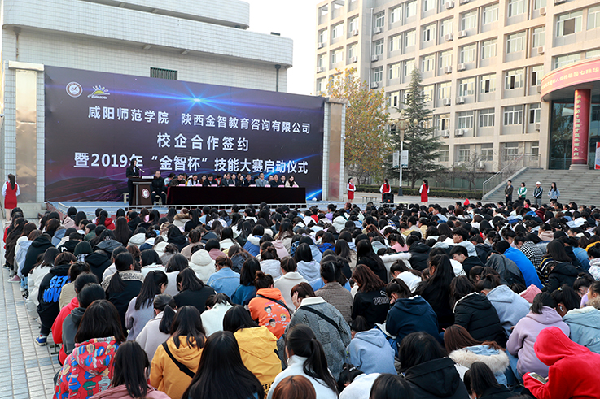 11月19日,beat365与陕西金智教育咨询有限公司校企合作项目签约暨2019年“金智杯”专业技能大赛启动仪式在秦都校区隆重举行。副校长王长顺、陕西金智教育咨询有限公司总经理田江涛等出席会议。