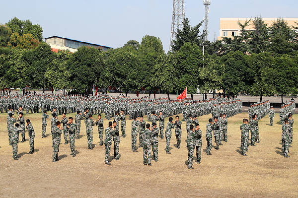 学校各职能部门、二级学院领导、承训教官和2019级全体新生参加大会。