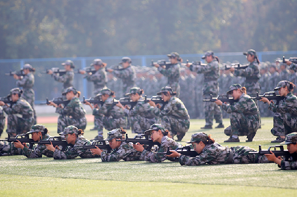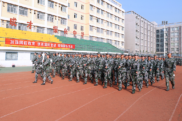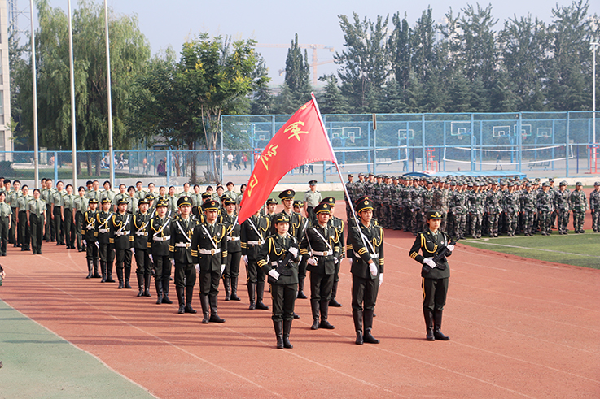 大会在奏唱国歌中拉开序幕。全体新生整装列队,高标准的完成了军体拳、战术、花样队形科目表演。表演过程中,同学们精神饱满、动作规范、队列整齐、气势雄壮,充分展示了军训成果,精彩的表演赢得了全场阵阵掌声。