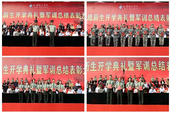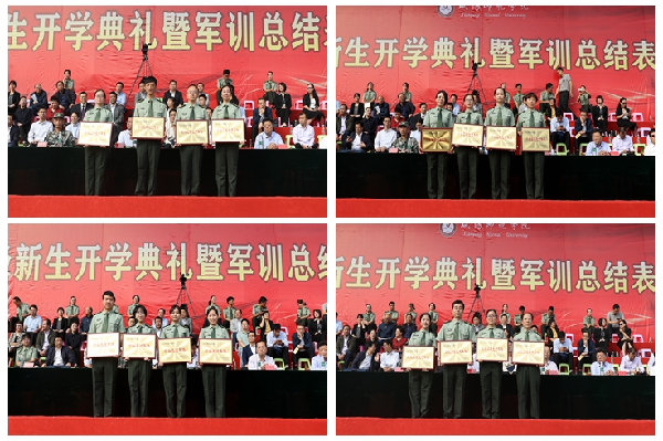 王长顺宣读了《beat365正版唯一官网必一2019级新生军训先进集体和先进个人表彰决定》。音乐学院等4个学院被评为“军训歌咏比赛先进集体”,物理与电子工程学院等4个学院被评为“军训内务先进集体”,文学与传播学院等4个学院被评为“军训会操先进集体”,马克思主义学院等4个学院被评为“疏散演练先进集体”;军训团一营、四营、六营被评为“军训最具人气营队”;吴金锁等12名教官被评为“军训优秀教官”,穆武超等8名辅导员被评为“优秀指导员”,陈奕文等4名辅导员被评为“军训网络宣传先进个人”;白雪等45名同学被评为“军训标兵”,史静等180名同学被评为“军训先进个人”。学校领导和承训部队领导为先进集体和个人颁发了奖牌和证书。文学与传播学院播音与主持艺术专业 1901班学生陈婷婷和职业技术学院计算机应用专业贺紫涵分别代表新生作了发言。