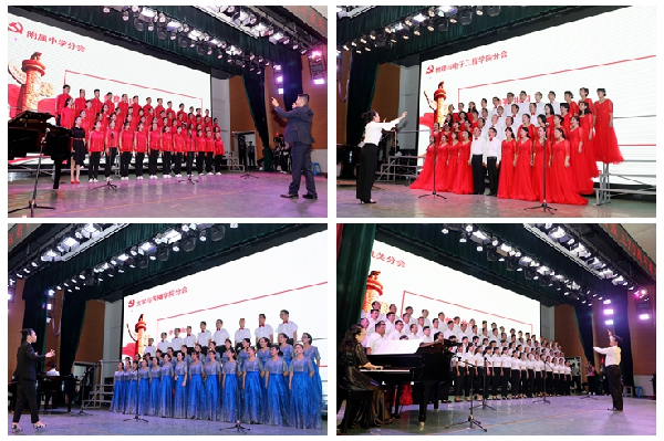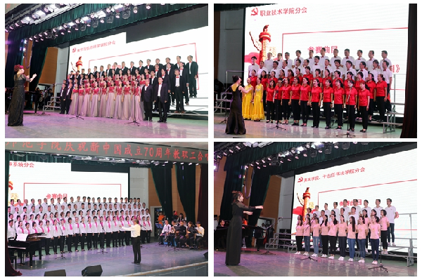 “爱我中华,健儿奋起步伐,爱我中华,建设我们的国家”,一首《爱我中华》,拉开了比赛的帷幕。各分会队列整齐划一,参赛选手精神饱满,合唱中不时穿插独唱、朗诵等多种艺术形式,热情讴歌新中国70年来的光辉历程和伟大成就。《歌唱祖国》《共筑中国梦》《向往》《祝福你亲爱的祖国》等一首首耳熟能详、铿锵有力的歌曲,令人精神振奋,唤起全场所有人的红色记忆,仿佛回到了那些激情燃烧的峥嵘岁月,激发起人们对祖国的无限热爱和感激之情,更展现出新时代广大教职员工“凝心聚力、担当作为”的坚定信念和“蓬勃向上、斗志昂扬”的精神面貌。整场比赛精彩纷呈,高潮迭起,充满着浓浓的爱国热情,赢得了现场观众的阵阵掌声。