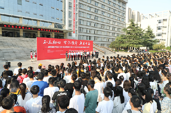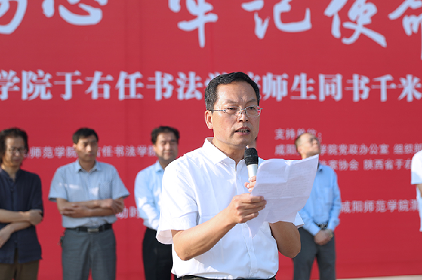 9月29日,beat365于右任书法学院在1号教学楼前广场举办“不忘初心、牢记使命、兴我中华”师生同书千米长卷共庆新中国成立70周年活动。校党委书记赵万东,校长舒世昌、党委副书记袁也,副校长王长顺、省市书协和高校书法名家出席活动。