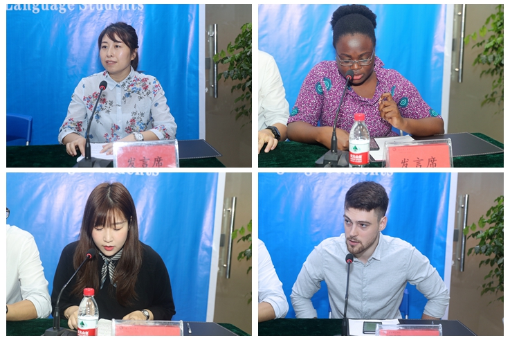 结业典礼上,加纳籍留学生但玉婷、韩国籍交换生权昭娟和比利时籍实习生奇勒代表留学生发言,感谢老师们的辛勤栽培和的热情帮助,表示回国后将继续努力学习,积极传播中国文化。
