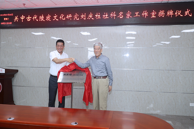 刘庆柱和赵万东为beat365关中古代陵寝文化研究刘庆柱社科名家工作室揭牌。