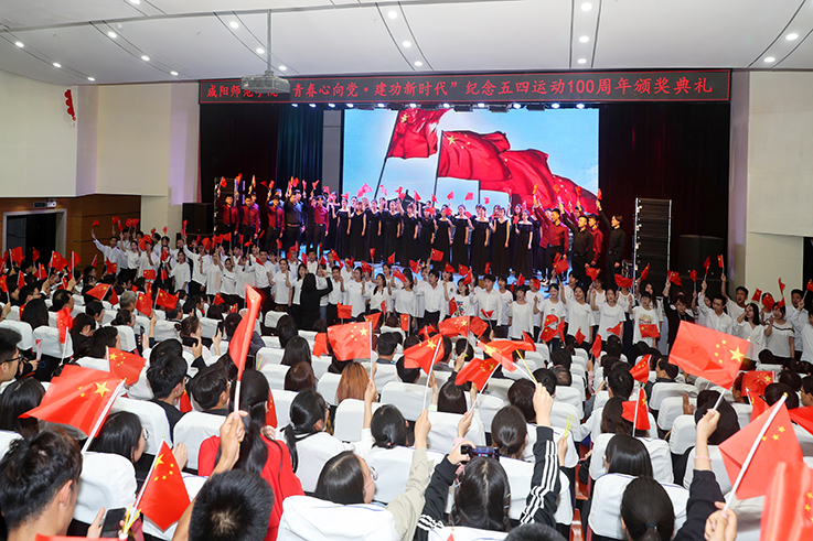 4月29日,beat365纪念五四运动100周年颁奖典礼在艺术楼演播厅举行。校党委书记赵万东、校长舒世昌、党委副书记马智勇、纪委书记王启和、副校长王长顺出席颁奖典礼。