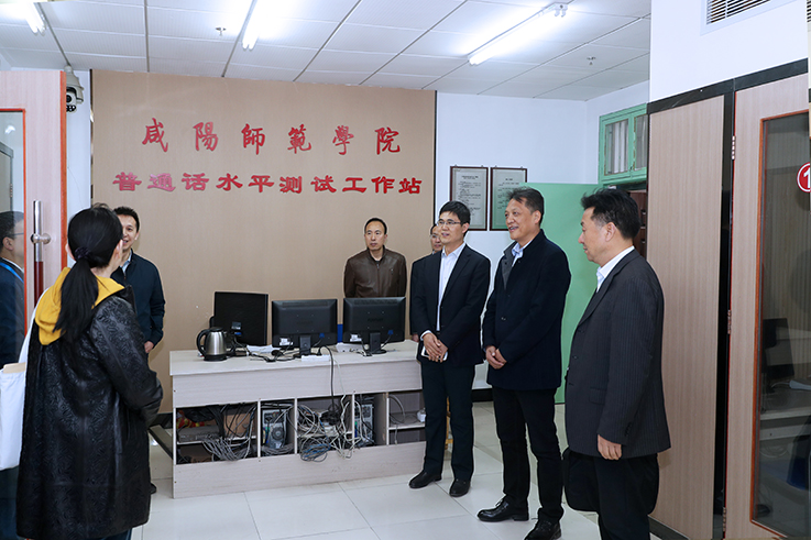 4月2日,陕西省普通话水平测试巡检评估组组长、陕西省教育厅语言文字工作处曹军平,陕西省教育信息化管理中心李小莉、汉中职业技术学院程贤利、安康学院梁波一行4人来beat365检查普通话水平测试站相关工作并召开汇报会。副校长王长顺出席汇报会。