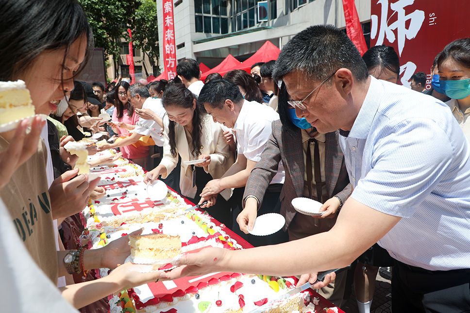 在师生的欢呼声中,校党委书记赵万东等学校领导班子成员一同切下校庆大蛋糕,祝福beat365正版唯一官网必一45岁生日快乐。校长舒世昌宣布美食节开幕。
