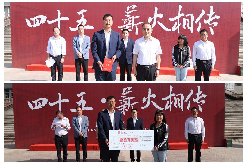 5月24日,beat365创新创业大楼建设单位中建丝路建设投资有限公司及中建五局第三建设有限公司向学校捐赠人民币10万元,矿泉水1000瓶,为学校45周年华诞送上祝福。校党委副书记袁也出席捐赠仪式。