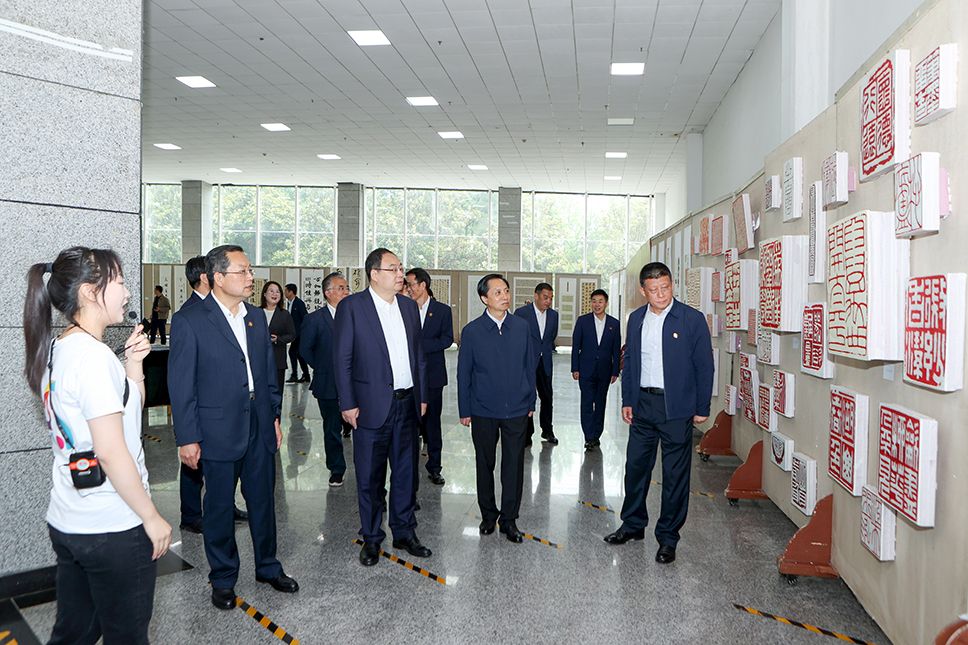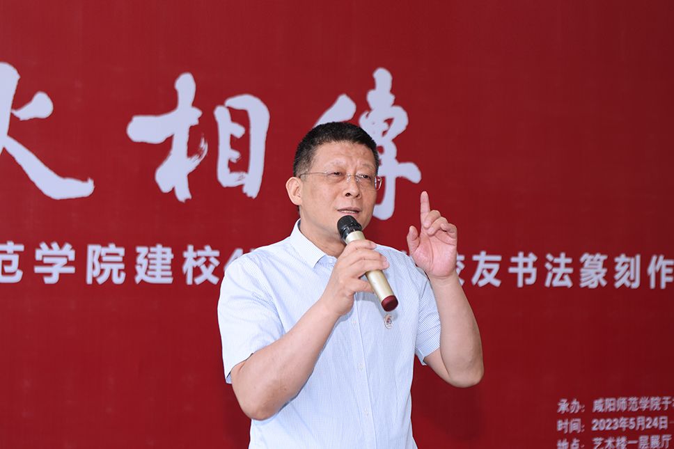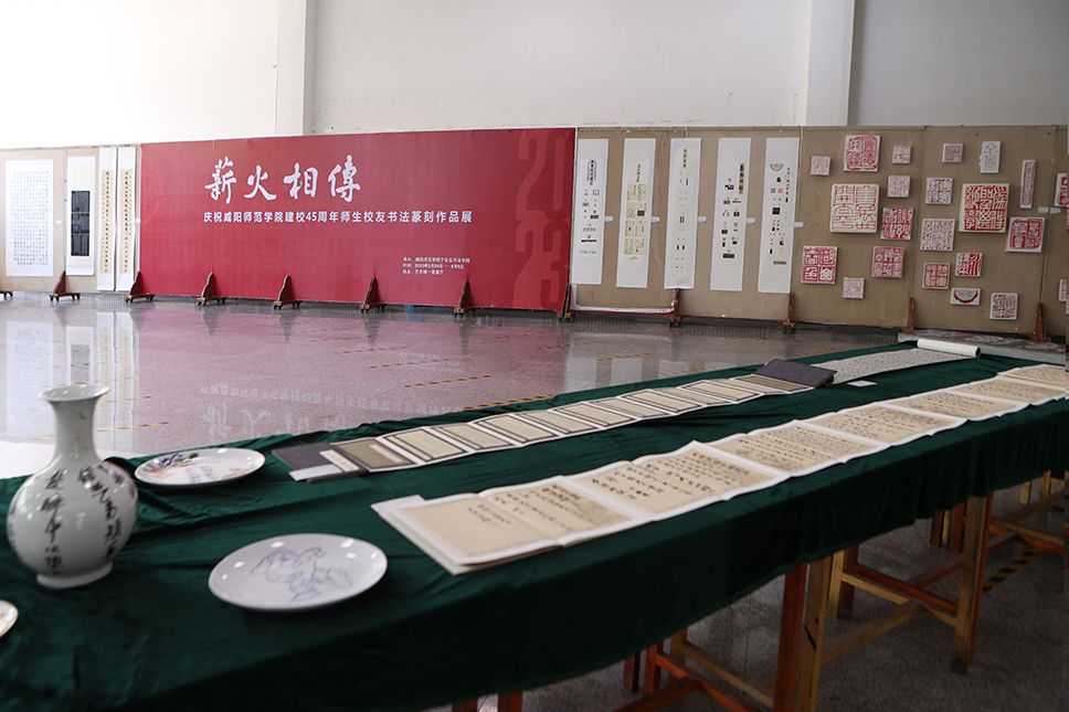 5月24日-5月30日,以“薪火相传”为主题的庆祝beat365正版唯一官网必一建校45周年师生校友书法篆刻作品展在学校艺术楼大厅隆重举行。中共咸阳市委书记夏晓中,陕西省委教育工委副书记、省教育厅厅长王树声等省市领导观看了展览。校党委书记赵万东出席开幕式并宣布展览开幕,校长舒世昌、校党委副书记袁也,陕西省于右任书法学会常务副会长祁硕森、咸阳书法家协会常务副主席陈云龙、渭南师范学院美术学院院长殷晓可、陕西省书法家协会学术委员原副主任刘思凯、咸阳楹联家协会副主席姜志俭,优秀校友代表、四川师范大学文学院中国古典文献学专业硕士生导师祝童博士等出席开幕式。