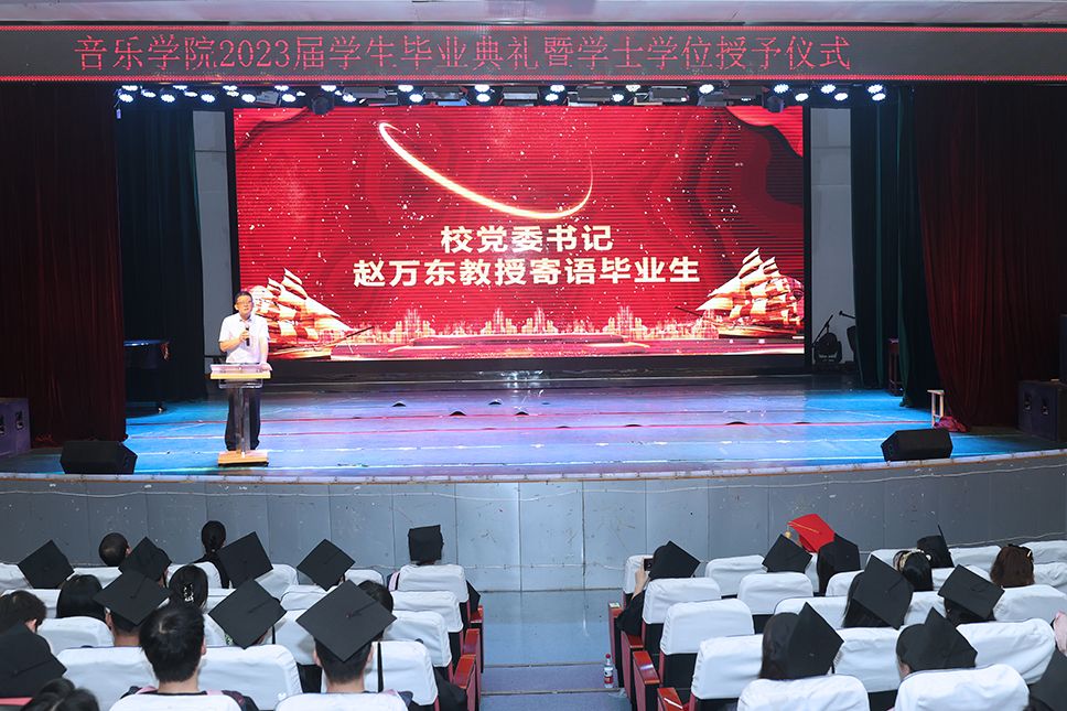 6月27日,音乐学院在艺术楼演播厅隆重举行了2023届学生毕业典礼暨学位授予仪式。校党委书记赵万东出席。