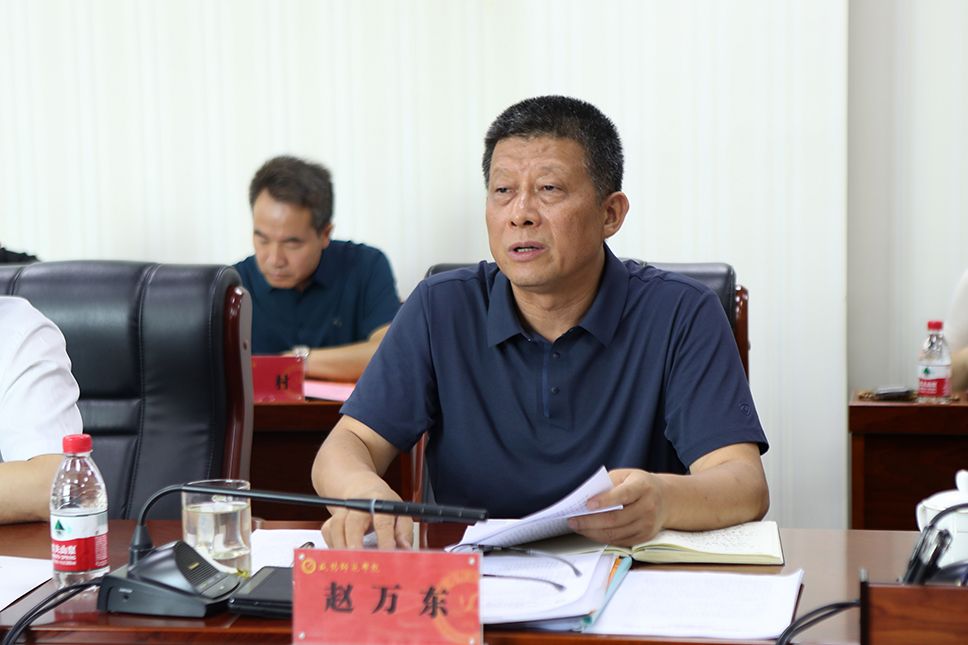 赵万东作表态发言,他指出,自主题教育开展以来,在省委主题教育第十巡回指导组的精心指导下,学校扎实推进主题教育各项工作,务实开展调查研究,有力促进了各项工作的进步发展,对下一步工作他表示:一是提高政治站位,继续开展好主题教育。继续保证暑假期间主题教育有序有效开展,认真做好组织生活会和民主生活会的各项准备工作。二是继续走深走实,确保调研取得实效。认真做好调查研究“后半篇”文章,把调研成果及时上升为学校决策部署、转化为制度举措,结合学校开展“四个年”活动,确保各项事业取得好成绩。三是持续抓实抓细,在常态长效上下功夫。紧扣学校“申硕”“新校区征地”等重点工作,找准主攻方向,明确发力重点,奋力追赶超越,以具体行动和实际成效坚定拥护“两个确立”、坚决做到“两个维护”。四是抓好检视整改,在建立长效机制上再用力。围绕主题教育查摆的问题,继续细化调整整改措施和目标,限时整改,对群众反映的民生实事,立行立改,让师生员工增加获得感和幸福感,真正感受到主题教育的成效。