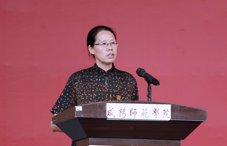 典礼现场,校领导为2023级专升本新生代表佩戴校徽。一枚小小的校徽,代表了学校的历史与文化,承载了学校的光荣与梦想。戴上这枚校徽,就亮明了咸师人的身份,继承了咸师人的荣光也肩负了咸师人的责任。
