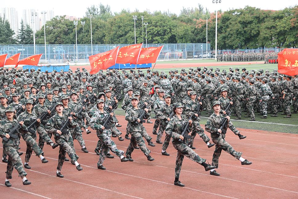 随着赵万东一声令下,军事技能训练成果展在庄严的升国旗仪式中拉开帷幕。