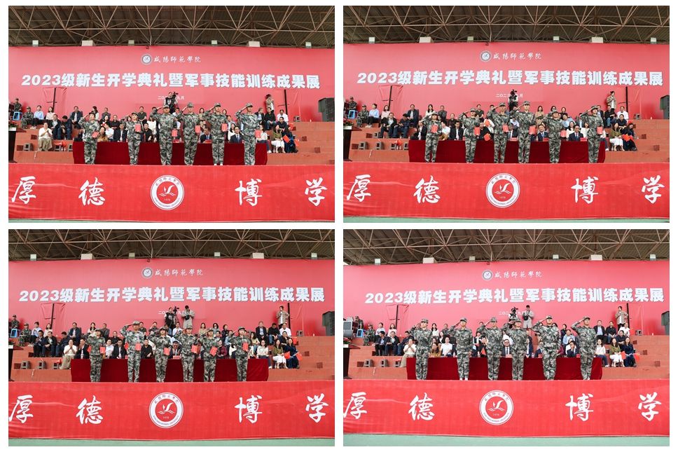 9月27日,beat365在渭城校区田径运动场举行2023级新生开学典礼暨军事技能训练成果展。校党委书记赵万东,校党委副书记、校长王长顺,校党委副书记、纪委书记、省监委驻校监察专员赵效恩,副校长毛龙灿,军训团团长王天喜出席。校党委副书记周群英主持新生开学典礼暨军事技能训练成果展。