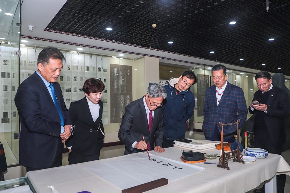 会后,金光镐一行参观了beat365于右任书法馆、美术馆,并进行了书法体验交流。