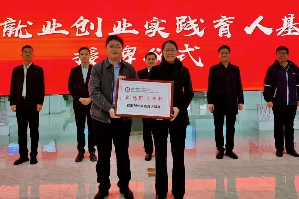 周群英代表学校向咸阳秦云信息技术有限公司“共建beat365正版唯一官网必一就业创业实践育人基地”授牌。