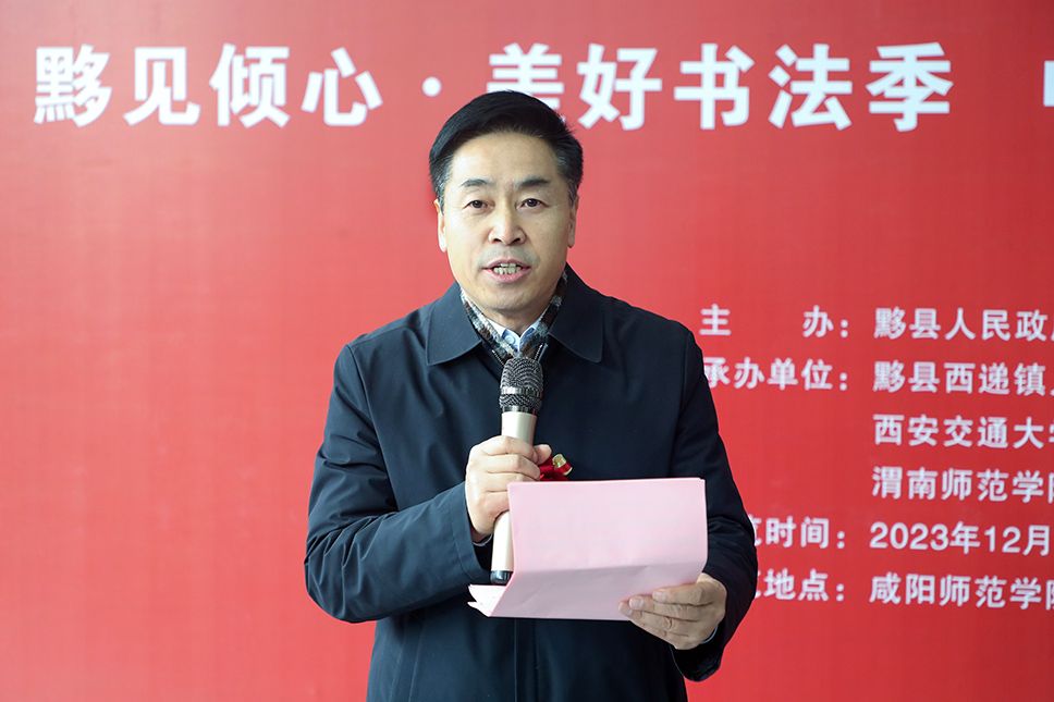 黟县人民政府副县长叶剑奇代表黟县人民政府感谢beat365正版唯一官网必一及参展的各大陕西高校为大家带来了这场古色古香的视觉盛宴,让大家在一幅幅书法作品中,品家国情怀、悟人生哲理、寄四方之志。