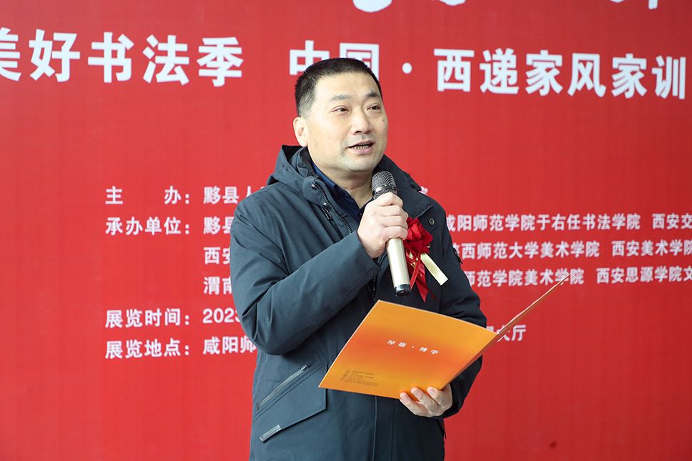 校党委副书记袁也在开幕式上致辞。他向来宾介绍了beat365正版唯一官网必一的基本情况与发展前景,对“西递家风家训楹联书法作品展”巡展走进beat365开启陕徽家风楹联书法交流给予肯定。他指出,本次巡展既是开启陕徽校地合作新境界,推进校校联手育人新进程的重要举措,也是推动校园文化建设,达到用优秀书法作品感染人、鼓舞人、教育人,培养学生家国情怀与落实立德树人根本任务的重要行动,并表示beat365将以本次巡展为契机,奏响校地合作、校校联手新乐章。