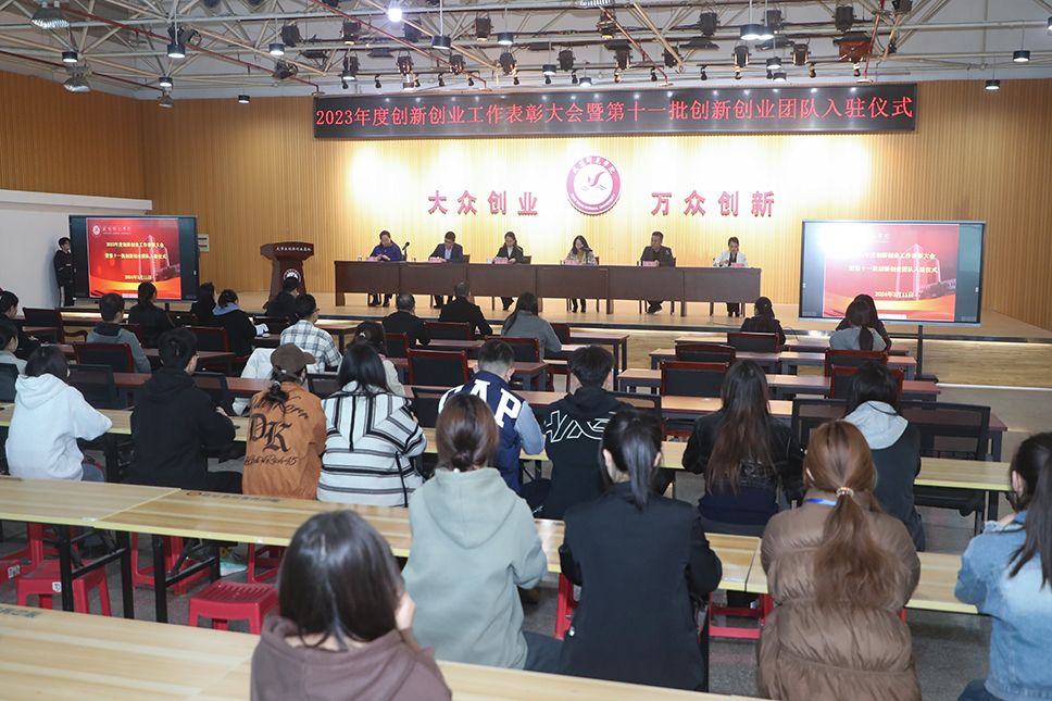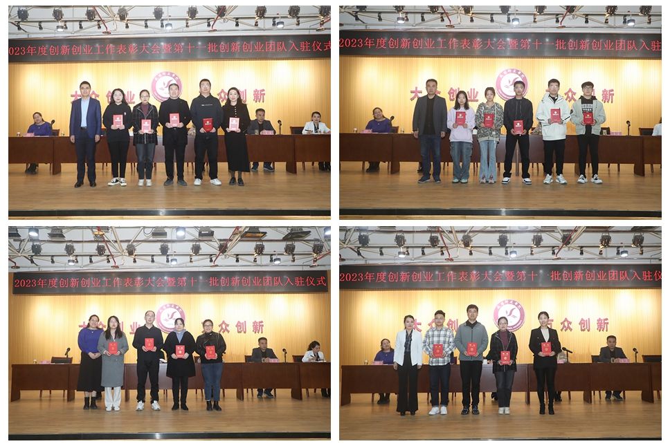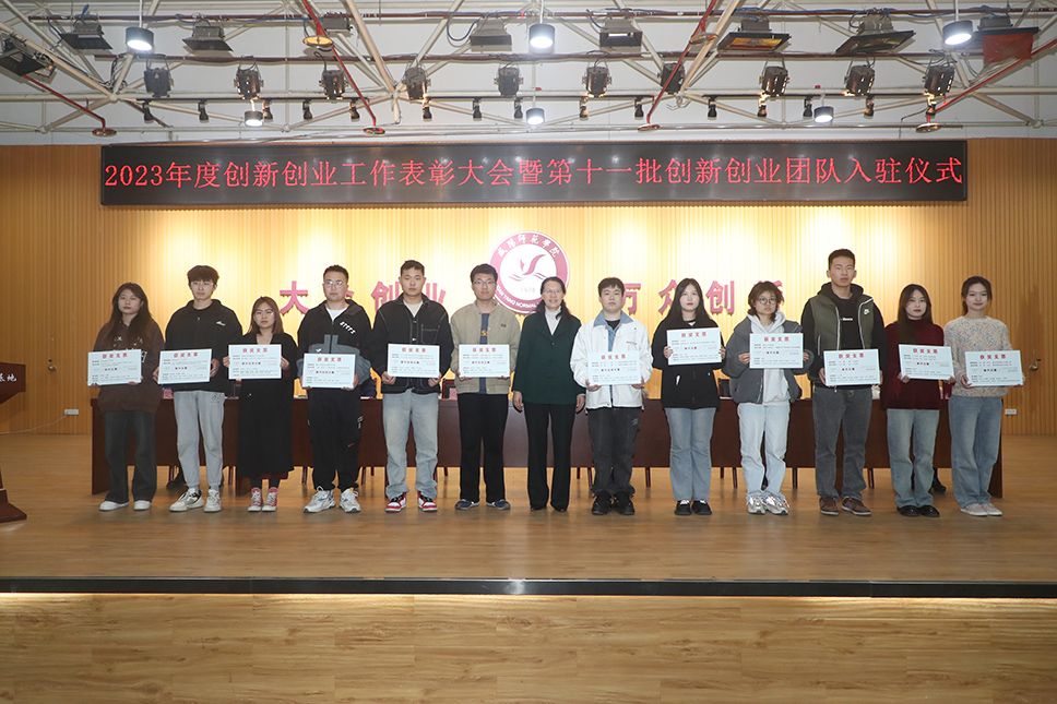 招生就业处相关科室负责同志、获奖团队学生、第十一批创新创业入驻团队指导教师及全体团队成员参加了仪式。