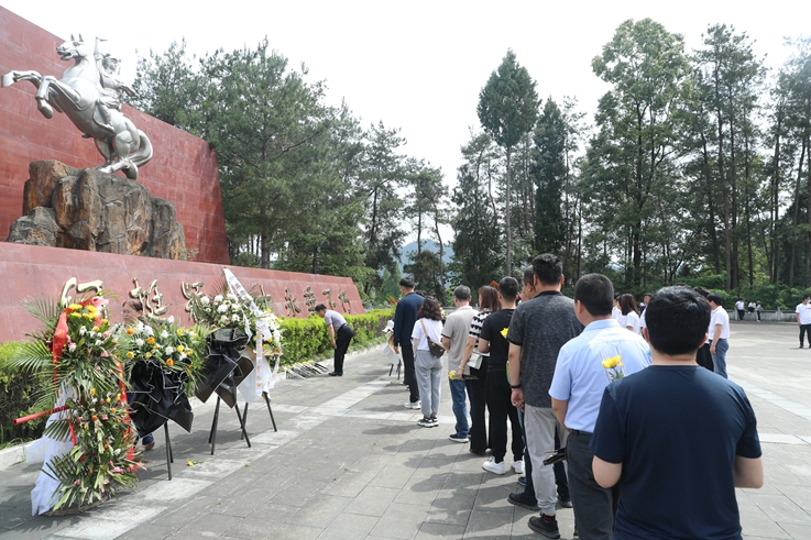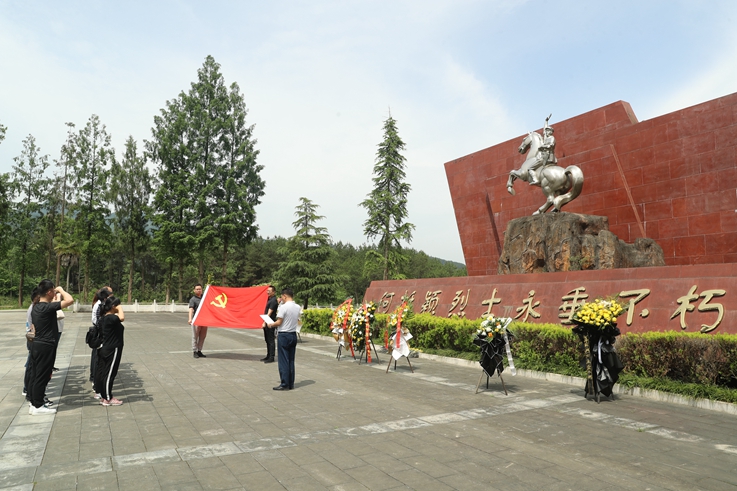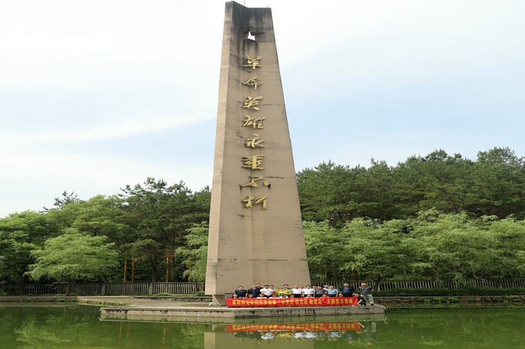 全体党员瞻仰了革命烈士纪念碑,向何挺颖烈士献花,面对党旗重温了入党誓词。
