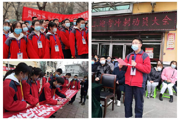 初高三的教师代表、学生代表、家长代表分别发言。初三、高三全体师生一同宣誓明志,高三学子高声为自己加油呐喊,鼓掌助威,充分展现了百日奋战,敢于亮剑的决心和意志。