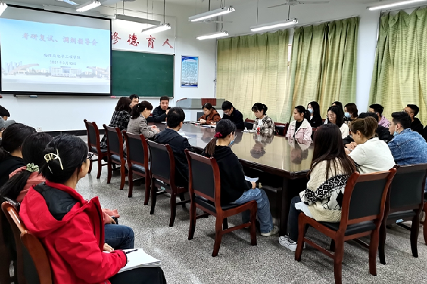 近日,为持续推进学院考研工作,帮助考研上线学生做好复试、调剂等工作,提升学生考研录取率,物理与电子工程学院于3月18日举办了考研复试、调剂指导会。学院党委副书记袁月主持会议。