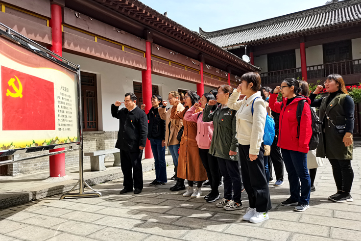 葛牌镇区苏维埃政府是中共鄂豫陕省委在关中地区建立最早的红色政权。在葛牌镇区苏维埃政府纪念馆展厅,大量珍贵的历史资料和图片展现了共产党人不屈的战斗精神。物电院教工党员通过看历史照片,实物和导游的讲解,回顾了中国共产党在艰苦斗争岁月中的革命历史,缅怀老一辈无产阶级革命先烈的光辉业绩和卓越功勋。全体党员还重温了入党誓词,表达了继承和发扬革命先辈的光荣传统,牢记使命担当、接续奋斗拼搏的坚定决心。