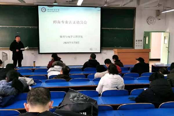 1月9日,物理与电子工程学院召开师范专业认证动员会,院长董群锋主持会议。