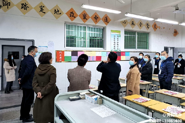 2月28日下午,渭城区教育局副局长王芳一行对附中春季开学工作进行检查指导,对附中开学准备工作给予了充分的肯定。她表示,附中的开学工作体现了“细、暖、实”的特点,全体教职工亲力亲为,工作细致入微,细化疫情防控工作方案和应急处置预案,严格落实测温、消杀、安检等各项防疫举措,确保了开学工作顺利开展。