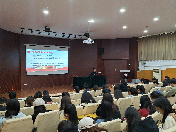 11月6日,马克思主义学院联合外国语学院在学生处四楼报告厅开展2020年安全教育及防范网络诈骗宣讲会。宣讲会由渭城公安分局教导员寇建华主讲,学校保卫处处长董顺杰、外国语学院副书记贺美琴、辅导员及100余名学生参加会议。会议由外国语学院辅导员李娇主持。
